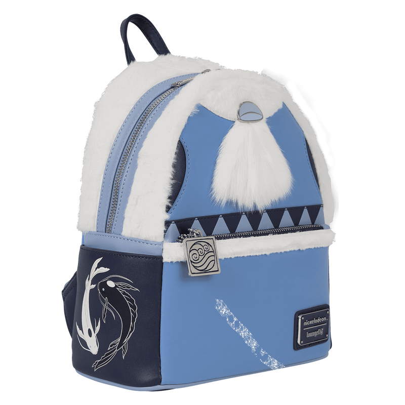 This mini backpack is inspired by the ensembles of the Water Tribe from Avatar: The Last Airbender. You’ll find applique and plush details, and the Water Tribe symbol illustrated on the back of the bag.